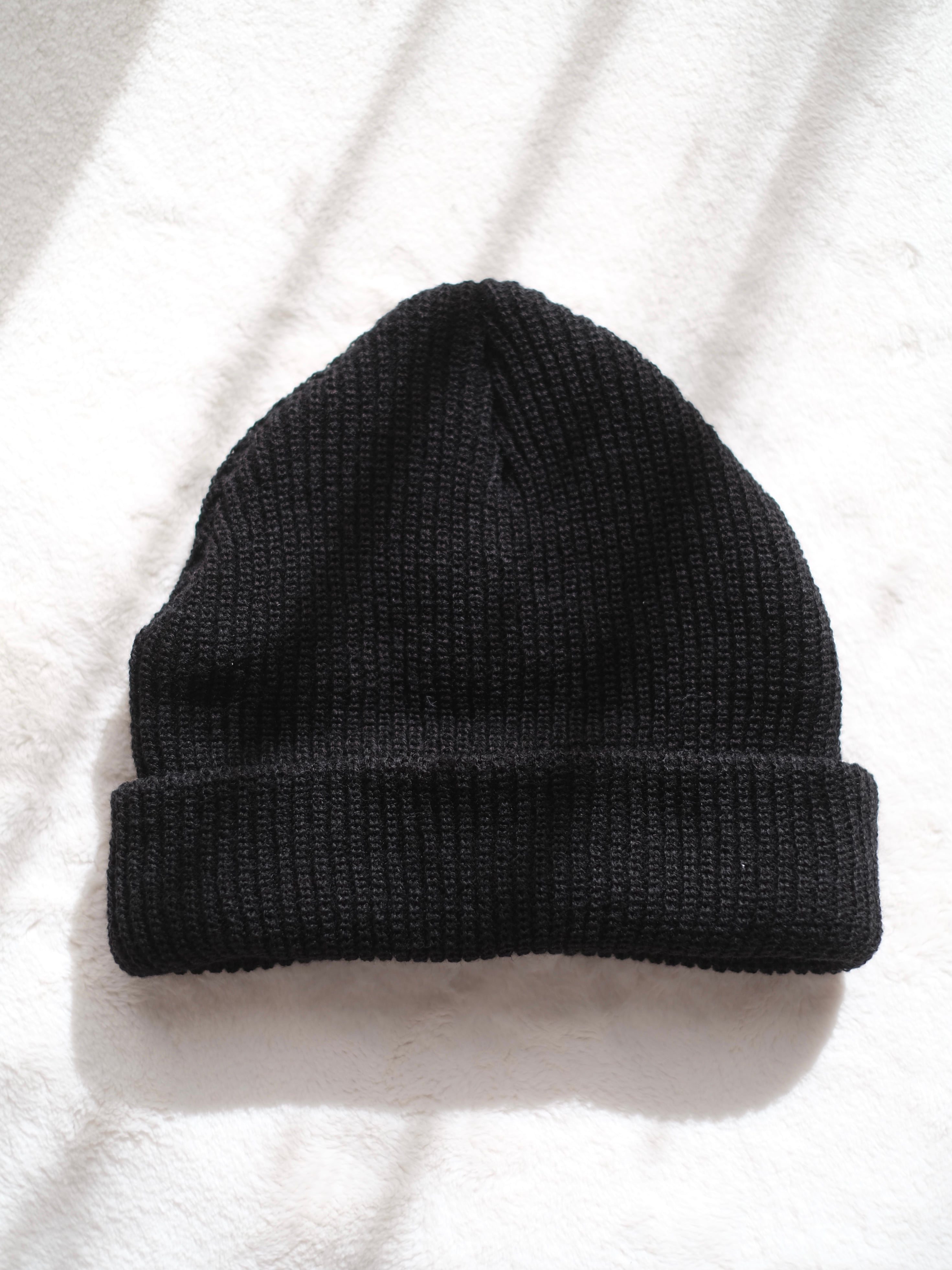 カラー ブラック ニット帽 mflifeco acrylic 100% all season beanie Free size (55cm~ 60cm)